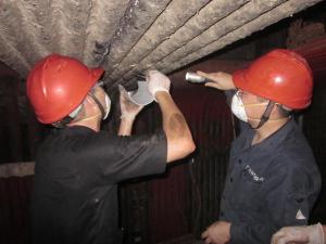 防磨防爆小組穿梭于爐膛內(nèi)部汽水管道之間,攀爬與腳手架之上,克服了爐膛內(nèi)部塵埃肆虐、作業(yè)空間狹小、呼吸不暢等困難,全身心投入到艱苦而重要的檢查工作中。通過“看、摸、測、檢、防”的“五招”工作法,細(xì)致入微的檢查,記錄、標(biāo)記、拍照,不放過任何一個死角,保證了防磨防爆工作的效果。